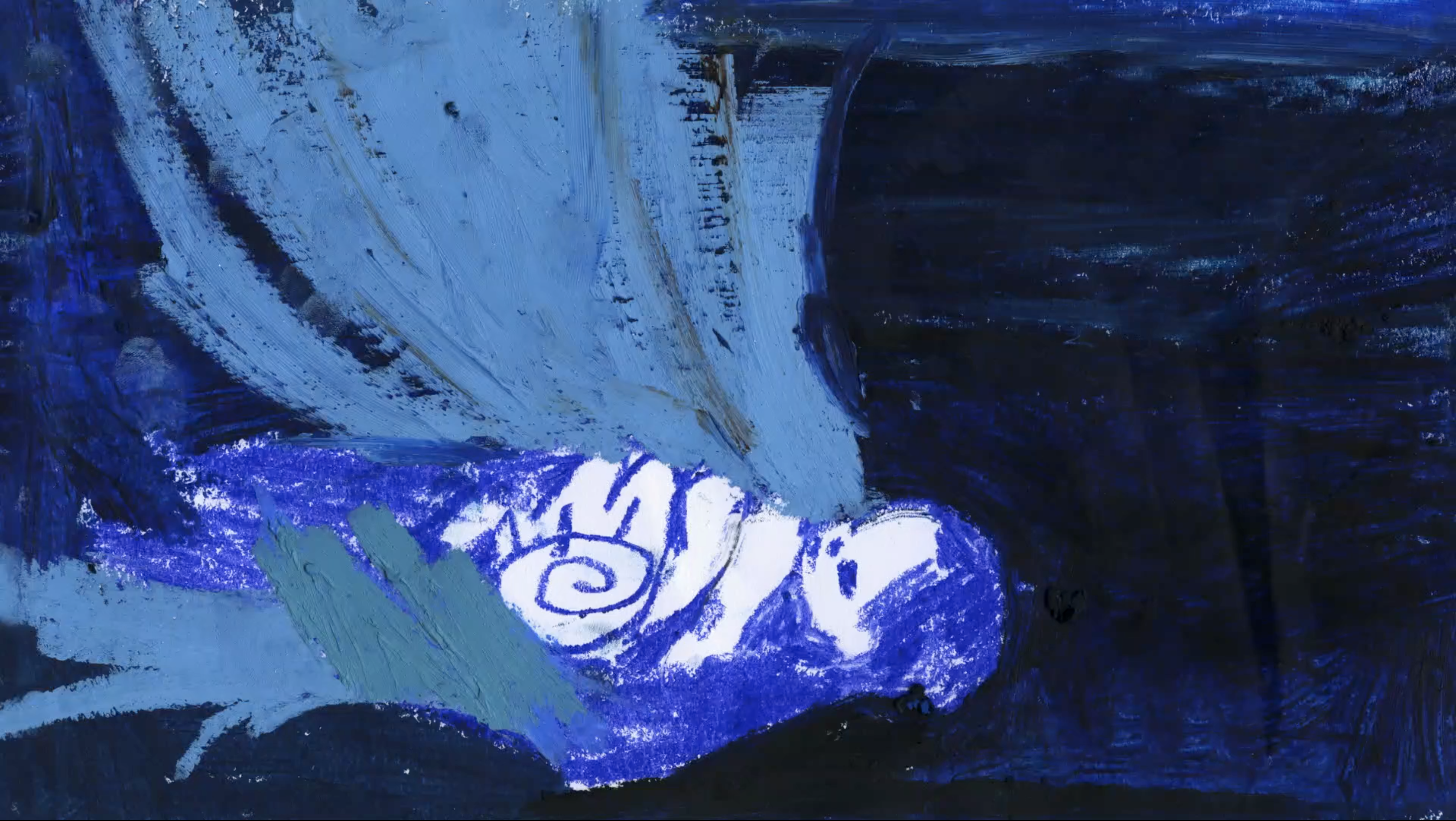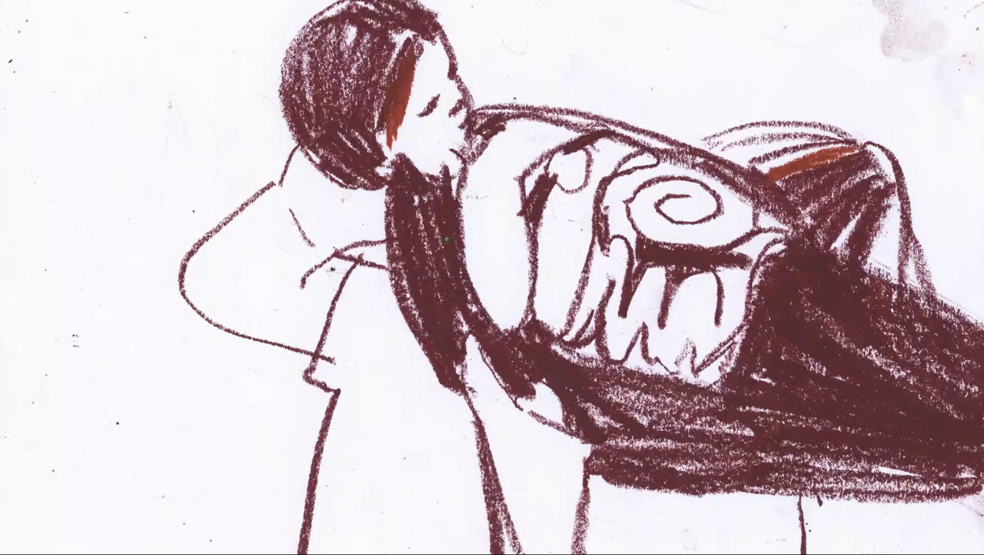 The animation consists of six hundred drawings that have been realized with oil pastels on paper. This technique allows to imagine instead of having to reframe something that already exists, working on the film as a painting that can be composed without a defined script. Also the sound part was elaborated, in collaboration with sound artist Nicola Cocco, in an imaginative way. Sampling sounds from everyday and collective memory guide, punctuate and accompany a ritual that is both discovery and desecration.